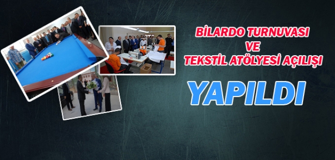 Ankara 2 Nolu L Tipi Kapalı Ceza İnfaz Kurumunda düzenlenen, Ankara Ceza İnfaz Kurumları Kampüsü Bilardo Turnuvası ile İlkateks Firması ve Kurumumuz işbirliği ile yapılan Tekstil Atölyesinin açılışı; 12 Mayıs 2015 Salı günü Genel Müdürümüz Sayın Enis Yavuz YILDIRIM, Genel Müdür Yardımcımız Sayın Ali YILDIZ, Eğitim Daire Başkanımız Sayın Çelebi YILMAZ, Tetkik Hakimimiz Sayın Çiğdem EKİCİ SAVAŞ, Cumhuriyet Savcımız Sayın Beşir ÇİFLİK, Tabur Komutanımız Sayın Yarbay Tarık HEKİMOĞLU ve Sincan Ceza İnfaz Kurumları Kampus Hastanesi Başhekimi Dr. Murat DAĞDEMİR ve Kampus Ceza İnfaz Kurumları Müdürlerinin de katılımıyla yapılmıştır.
