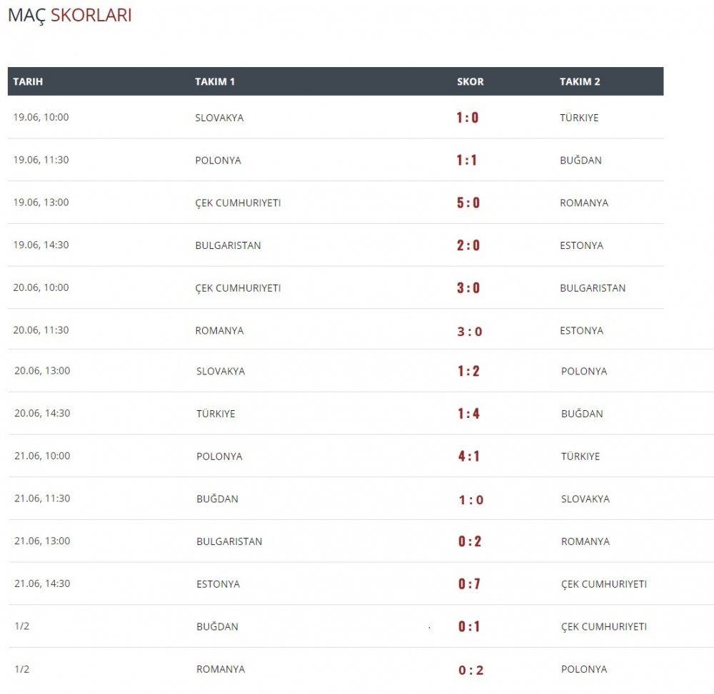 Turnuva sonunda İlk üç sıra şu şekilde oluştu.
