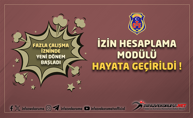 Bilindiği üzere ; Ceza infaz kurumlarında görev yapan personelimizin fazla çalışma izinleri, merkezi bir sistem bulunmadığından kurumlar tarafından kendi bünyelerinde hesaplanmakta ve bu durum uygulamada farklılıklara sebebiyet vermekteydi.