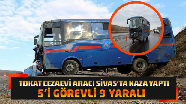 Tokat Cezaevi Hükümlü/Tutuklu Nakil Aracı Sivas'ta Kaza Yaptı 5'i Görevli 9 Yaralı